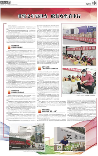 今年以来,“公益中行”平台在助力抗疫,扩大消费扶贫方面充分发挥了主渠道作用,有力促进了贫困地区滞销农产品的销售。