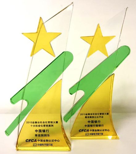近日,在中国金融认证中心主办的“2015金融业社会化营销大赛”中,中国银行微银行荣获“最佳微信公众平台”及“十大社会化营销案例(幸运刮刮乐)”两项大奖。