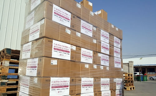 捐赠物资的外包装上,用中文和意大利文写着“冲破黑暗夜 再见满天星”。这句话出自意大利著名诗人但丁的《神曲》,表达了中国银行员工对意大利早日战胜疫情的美好祝福。
