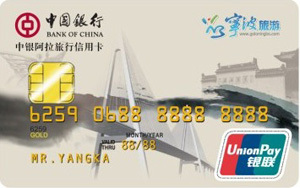 阿拉旅行卡是中国银行宁波市分行与宁波市旅游局携手推出的宁波市首张城市旅游主题信用卡。该卡具备借贷合一、分期付款等金融支付功能,同时可在本市象山松兰山旅游度假区、宁海森林温泉度假村、奉化滕头生态旅游景区、九龙湖旅游度假区等超100家景点、酒店类商户专享折扣优惠。持卡人可在宁波旅游过程中享受涵盖“食、住、游、购、娱”的特惠专享服务,安全支付承诺及放心旅游保障。