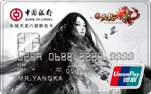 中国银行携手国内三大网络游戏公司之一的搜狐畅游,推出以游戏《新天龙八部》为主题的联名卡产品,以网络游戏用户、年轻群体为主推群体进行推广。