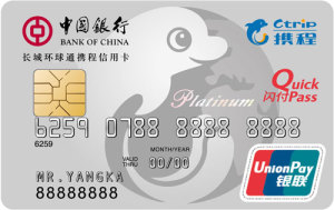 中国银行携手携程旅游网,全新推出长城环球通携程信用卡,为您提供更多产品选择,更安全支付体验。您既可享受透支免息、存款有息、分期付款等中国银行信用卡基本功能与服务,还可享受携程会员自动申请、消费积分自动兑换携程礼品卡、携程网预订返礼等多重专属权益,是您不容错过的商务旅行好伴侣!