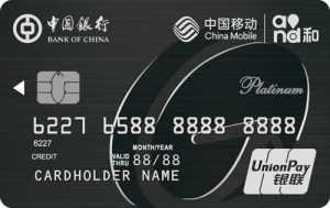 中银长城中国移动信用卡是中国银行及中国移动分别与万事达卡国际组织、中国银联合作推出的联名信用卡产品。该产品具有白金卡及金卡两种产品等级,融合金融与通信服务优势,致力于满足您对多样化品质生活的追求。