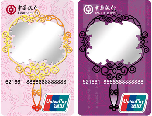 长城镜面借记卡卡面分为粉色和紫色二种款式,粉色象征着浪漫温馨;紫色象征着华贵时尚,卡面造型清新典雅,奢华的浮雕镜面边纹工艺,营造出高雅的氛围,集中体现了自我、华丽、时尚等元素。
