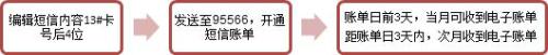 2.您可编辑手机短信13#卡号后4位,发送至95566,开通短信账单。