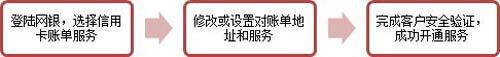 3. 您可登陆网银,选择“信用卡账单服务”,开通电子对账单和推入式对账单服务,更新邮箱和手机账单地址,完成网银安全信息验证后即可开通服务。