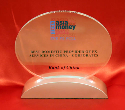 2005年亞洲貨幣AsiaMoney8月刊公布中國銀行獲得“中國最佳外匯交易供應商(Best Domestic Provider of FX Services in China—Corporates)”。