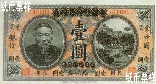 1912年發行的李鴻章像兌換券一圓、五圓、拾圓券是中國銀行最早發行的貨幣。