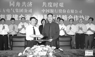 中行行長李禮輝在四川地震災區參加向東方電氣集團公司災后重建提供300億元授信額度簽約儀式