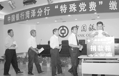 中行山東省菏澤分行共產黨員為災區捐獻“特殊黨費”
