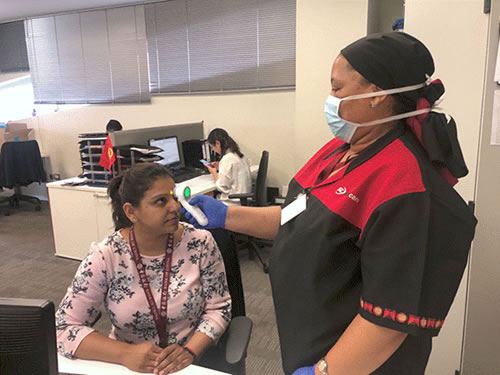 圖為中行約翰內斯堡分行每日定時為員工測量體溫