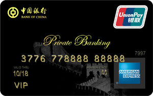 為滿足中國銀行高端客戶的用卡需求,填補我行頂級信用卡的空白,中國銀行推出了為私人銀行客戶量身打造的頂級信用卡--長城美國運通卡。該卡由中國銀行與全球高端信用卡品牌美國運通合作發行,是目前長城環球通平臺上最高端的信用卡產品。作為私人銀行客戶的重要身份標識,持有這張卡片,即可在中國銀行全球網點享受私人銀行客戶服務。此款產品充分發揮我行全球服務的比較優勢,集合了長城環球通信用卡的所有功能優勢,并包含了眾多尊享服務,同時借助美國運通的高端品牌影響力及其海外完備的增值服務體系,為私人銀行客戶提供頂級的金融服務禮遇,“全球榮耀、非同凡享”。