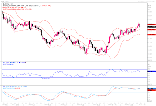 ADP報告顯示,美國去年12月私營部門就業人數增加了23.5萬人,高于預期的15萬人。這表明許多公司仍在招聘,勞動力市場依然強勁。總體來看,美國經濟已經放緩,企業招聘的員工也沒有前一年那么多,但美國勞動力市場仍然非常強勁。失業人數接近歷史最低水平,失業率僅為3.7%。這對美聯儲來說仍然太強勢了。美聯儲擔心,勞動力短缺將推高工資水平,并將加大降低高通脹的難度。與此同時,美國至12月31日當周初請失業金人數為20.4萬人,預期22.5萬人,前值22.5萬人。上周美國初請失業金人數降至三個月低點,12月份裁員人數下降43%,表明勞動力市場吃緊,可能需要美聯儲繼續加息。美聯儲方面,堪薩斯城聯儲主席喬治發表了鷹派講話。她認為美聯儲應該將基準利率上調至5%以上,并保持在這一水平,直到出現物價企穩的重大跡象。受強勁數據以及喬治講話提振,美元上漲0.83%至105.13,美元指數走強令黃金承壓,黃金多頭乘機進行獲利了結。目前,交易員現在正在等待美國勞工部定于周五公布的非農就業數據。若數據強于預期將打壓黃金,提振鷹派美聯儲加息預期,而任何令人失望的數據或都將幫助金價維持在1800關口之上并產生升勢。
