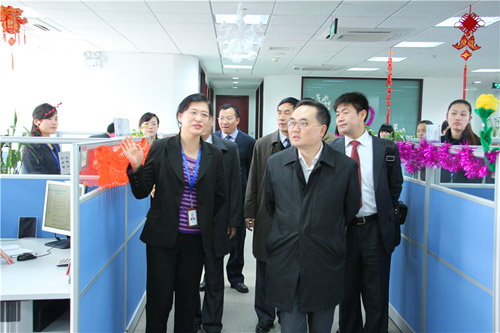 近日,罗建军董事长总裁、陈晓副总裁一行在上海拜访了大地保险总公司郭敏总经理,并参观了位于浦东张江的大地总公司运营中心,就运营中心的咨询规划、建设实施、运行模式及组织架构、风险控制等方面的问题进行了深入、细致的了解和沟通。拜访期间,大地总公司尚勇涛总助、运营中心张昭霖、贾国强副总经理以及电销中心谢俐俐副总经理陪同罗董事长一行现场考察了客服、核赔、电销等板块的运营情况,就运营中心建设过程中的一些具体问题进行了咨询和交流。
