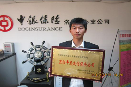 洛阳市保险行业协会于2012年4月28日组织召开了“洛阳市首届保险工作会议”,会上公布了2011年度洛阳市保险行业优质服务竞赛活动评选结果。河南分公司所辖洛阳中心支公司积极开展诚信建设工作,不断提升服务水平,在本次评选活动中表现优异,获得了“2011年度洛阳市诚信财产保险公司”的称号。