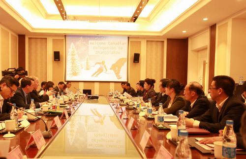 中银保险公司王立军董事长、中国银行北京市分行黄新斌副行长和河北省分行周彦军副行长为加方考察团的到访做了大量撮合工作,并陪同考察团到2022年冬奥会赛场所在地的张家口市、北京延庆区进行商务对接活动。张家口市马宇骏市长、武卫东常务副市长与考察团进行会谈并达成初步意向,计划通过创建“中加冬奥产业园”,打造集冰雪运动产业、绿色建筑、旅游开发、可再生能源、招商引资为一体的商务平台,双方约定先行成立服务类平台公司并加快加拿大的招商工作,并邀请中国银行和中银保险参与前期项目各项活动,为后续项目引进、共建中加产业园奠定基础。在延庆区,刘明利副区长与考察团就当地奥运项目和正在筹备的世界植物博览会的招商引资进行了深入的交流。