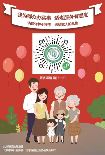 掌握流程、正确理赔,让保险护航老年人的幸福晚年。若有任何涉及理赔事宜的咨询,可致电保险公司客服热线,扫描"消保守护"小程序二维码即可获取保险机构联系方式!