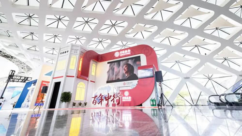 到达登录厅,首先可以来“百年中行品牌形象展区”逛逛。在延续首届消博会吸睛无数的复古骑楼造型基础上,进一步加入高科技元素,体现百年来传统与现代的交融,中行红的丝绸连接古今,从海上丝绸之路到海南自贸港建设,中行一直都在。