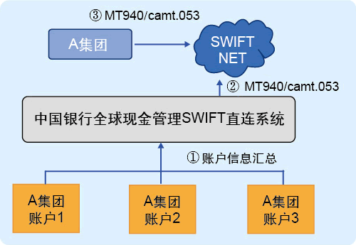 中国银行按照A集团要求,以SWIFT FileAct MT 940 / camt.053报文的方式将每个账户的余额和交易信息汇总统一反馈给A集团。 方案实施成效 跨国企业借助SWIFT渠道进行资金管理