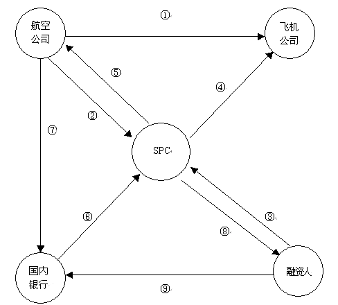 3.融资人按照购机协议中的价格向SPC提供全额融资,一般是由欧、美出口信贷机构提供融资担保的出口信贷(80%--85%),辅以部份商业银行贷款组成的银团贷款;