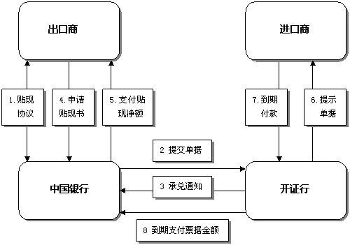出口贴现是指中国银行在出口信用证项下从出口商购入已经银行承兑的未到期远期汇票或已经银行承付的未到期远期债权或在跟单托收项下购入已经银行保付的未到期远期债权。如承兑/承付/保付/保付银行到期不付款,我行对出口商有追索权。