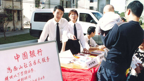 支行在抓好自身建设的同时,结合行业特点,积极履行社会责任。通过开展金融服务进社区、组织员工参加各类公益志愿者行动、定期组织慈善一日捐、与当地驻军开展军民共建等多种形式的活动,努力服务社会、回报社会,向社会各界展示了中行员工良好的精神风貌。