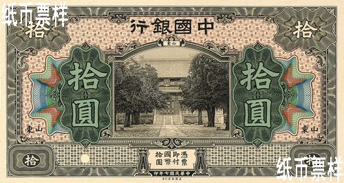 The Dacheng Hall of Confucius Temple in Qufu City of Shandong Province printed on the front side, and decorative patterns on the back |