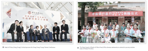 - Bank of China has taken an active part in culture and sports development by supporting many art troupes and promoting cultural exchanges;