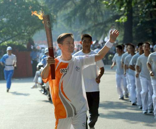 The torch relay at Wuhan was kicked off on August 31st. Five torchbearers from Bank of China ran with the flame on this stop. They are Mr. Yue Yi, Global Head of Head Office Personal Banking Business, Mr. Chen Dalin, Vice President of Hubei Branch, Mr. Liu Dachuan from Sichuan Branch Mianzhu Sub-branch, Mr. Qing Feng from BOCSC Mianyang Sub-branch and Mr. Zhong Yong from BOCSC Dujiangyan Sub-branch. The latter three are heroes from the Sichuan Wenchuan Earthquake in May.