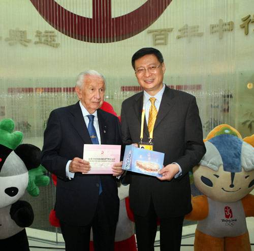 On August 21, BOC President Li Lihui presented No. 002008 HKD and MOP Olympic commemorative banknotes to Mr. Samaranch, IOC lifetime Honorary President at BOC Olympic On-site Showcasing Center, Beijing Olympic Green. This precious gift, as a donation to International Olympic Committee by Bank of China, will be treasured and displayed permanently at the Olympic Museum located at Quai d’Ouchy, Lausanne, Switzerland. At the ceremony, President Samaranch expressed gratitude on behalf of IOC to the Bank’s contribution to the Olympic Games. With prominent strength and devoted efforts to the course of Olympics, Bank of China leaves its own mark on Olympic Museum, an eternal monument.