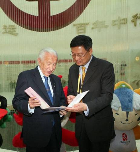 “A century-old Bank celebrates century-long Olympic Games.” Bank of China will combine the Olympic spirit with its corporate culture of‘delivering growth and excellence’. The donation of Olympic commemorative banknotes further illustrates the connection between the Bank and the Olympic Games. Bank of China will, together with the enterprise and people which love the Olympic course, make continued efforts to develop the Olympic Games and to promote the Olympic spirit.