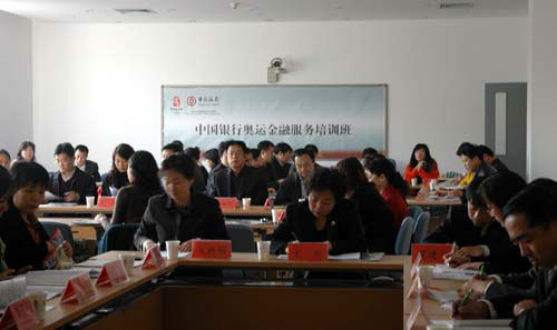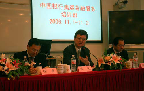 To enhance the financial service level for the 2008 Olympic Games and strengthen the core competitive ability, Bank of China Olympic Affairs Office and Beijing Branch jointly hold an Olympic Financial Service Training Class in Beijing from Nov.1, 2006 to Nov.3, 2006. Mr. Zhu Min, vice-president of Bank of China, attended the opening ceremony and addressed a speech.