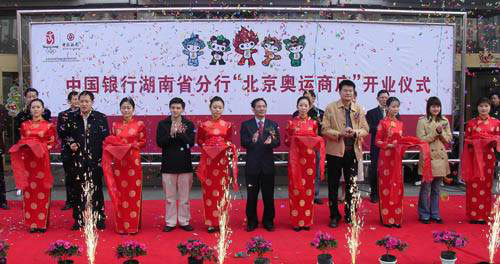 Bank of China’s Olympic licensee's outlet launched in Bank of China Hunan Branch in Changsha, the capital city of Hunan Province on December 25, 2006. The famous Olympic champion Xiong Ni and Gong Zhichao, who were born in Hunan, attended the opening ceremony.
