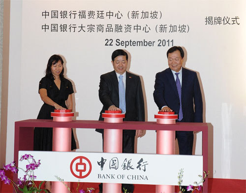 On September 22, Bank of China's Bulk Commodity Financing Center (Singapore) and Forfaiting Center (Singapore) were established concurrently, as the first Chinese bank to set up overseas bulk commodity financing center and Forfaiting center. Wei Wei, the Chinese Ambassador to Singapore, Yue Yi, Vice Executive President of Bank of China and Li Xiuting, Assistant Director of the International Enterprise Singapore were present at the inauguration ceremony.