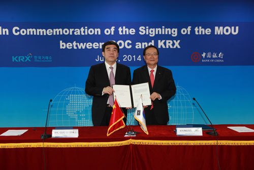 Chairman of KRX Kyoungsoo Choi expressed that the sustained and rapid development of the Chinese economy and the marked acceleration of the RMB internationalization process have paved the way for deeper cooperation between the financial communities of both countries. As a financial exchange with standardized operations, highly internationalized levels and great international influence, KRX looks forward to expanding the market of RMB-related financial products and providing investors with more diversified financial products and premium services, through the cooperation with BOC.