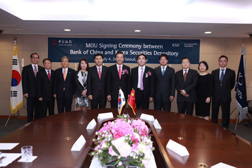 KSD is the only central securities depository and clearing institution in South Korea. As a core part of the Korean capital market, KSD is committed to providing a stable and efficient financial investment infrastructure for all the market participants, and also responsible for promoting the development of the financial industry, especially the capital market. In his address at the signing ceremony, Chairman of KSD Jaehoon Yoo pointed out that establishing comprehensive cooperation with BOC in RMB clearing/settlement, development of financial products and sharing of clients will favorably facilitate the development of the Korean capital market.