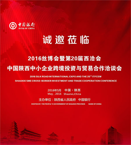 Xi’an, capital city of Shaanxi Province, as the starting point of ancient Silk Road, represents the origin of Chinese civilization and the microcosm of China's rapid development. We hereby sincerely invite all friends from the whole world to come to Xi’an and participate in “2016 China-Shaanxi SME cross-border investment and trade corporation conference” hosted by Bank of China and Shaanxi Provincial People’s Government in May.