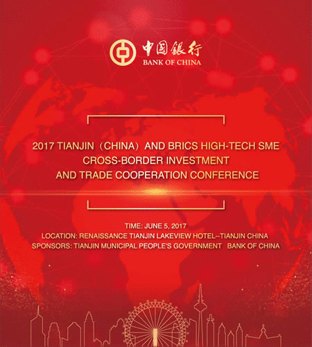 On June 5-6, 2017, Bank of China and Tianjin Municipal Government will jointly hold the “2017 Tianjin(China)and BRICS High-tech SME Cross-border Investment and Trade Cooperation Conference”. China assumed Presidency of the BRICS in 2017. As a major event held by Bank of China, a member of the BRICS Business Council, the conference is intended to help domestic SMEs and the SMEs of the BRICS countries and the world at large to strengthen the communication and cooperation, realize complementary advantages, achieve mutual-beneficial results and share the business opportunities brought by the global value chain, by leveraging on BOC’s strengths in internationalized and diversified development.