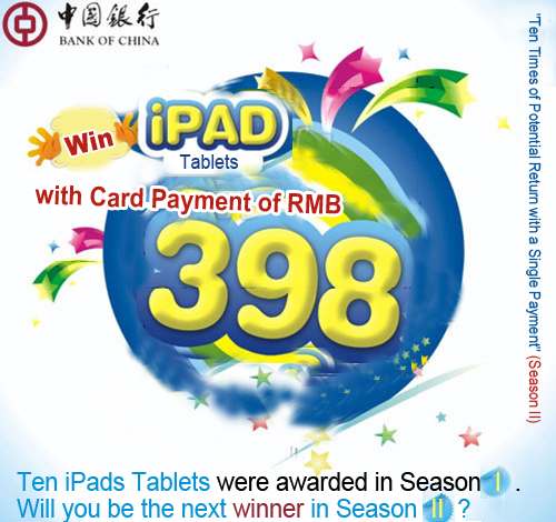 Win iPad with Card Payment of RMB 398 (Season II) (Hunan)