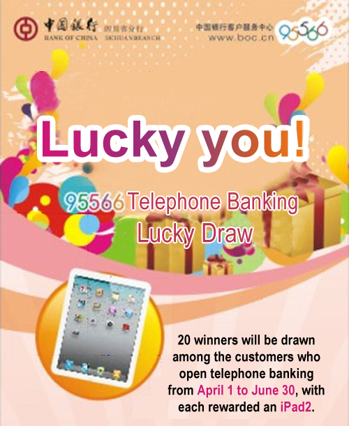 "Lucky You! - 95566 Telephone Banking Lucky Draw" has concluded under full supervision of Shudu Notary Public Office in Chengdu, Sichuan, and the announcement is as follows: