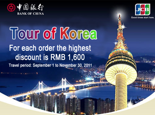 During the activity, cardholders reserving the specified routes for tour to Korea with BOC JCB Credit Card can enjoy: