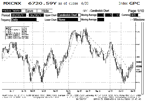 MSCI China Indices Chart (January 3 to June 30, 2011)