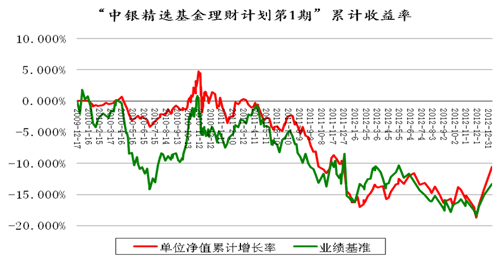 2012年12月31日,扣除全部费用后,本产品单位理财份额净值为0.8756。2012年下半年本产品净值增长率超出业绩基准0.71%。
