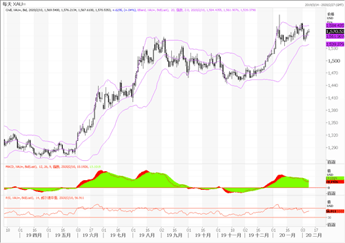 技术图上,黄金仍然在日线布林带上下轨1540-1585美元区间波动,日线MACD双线向下波动,周线出现顶背离,维持周五策略,在1570-1580美元区间做空,止损1585美元,目标1547美元。