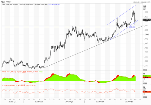 如果美国再度重走宽松之路,其他经济基础不如美国的国家在面对疫情的经济影响之时,降息或量化宽松也就成为了几乎是唯一的出路。因此在中长期的角度来看,黄金在全球货币环境的宽松之下是倾向于上涨的。虽然中长期看好黄金,但短期黄金的回调到什么位置,回调是否结束呢?