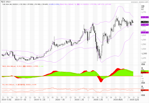 5月8日纽市盘中,金价下跌,现货黄金一度较日高1723回落逾20美元,刷新日低至1701.89美元/盎司。