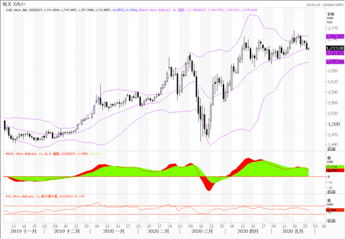 由于对经济复苏的预期升温,此外投资者关注中国的更多刺激措施,亚洲股市上涨,风险偏好回暖限制金价上涨,此外,周一的一项调查显示,德国的商业景气在5月份有所反弹,从前一个月的纪录最大跌幅中恢复过来,这有助于提高冒险情绪,黄金本周以来都处于获利回调的走势中。尽管部分投资者获利了结影响黄金涨势,但挥之不去的地缘紧张局势和世界各国政府的广泛刺激措施令黄金跌幅受限。随着全球不确定性仍在持续,各国政府向本国经济注资,利率也在降低,因此黄金看涨的基础因素仍显得较为牢靠的。