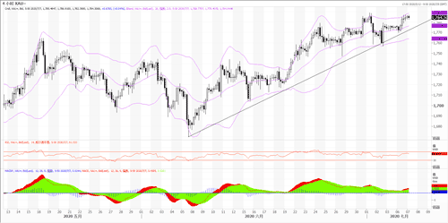 周一黄金上涨,从1770美元一线升至1780美元一线,最高1787.12,收盘于1784.2美元。