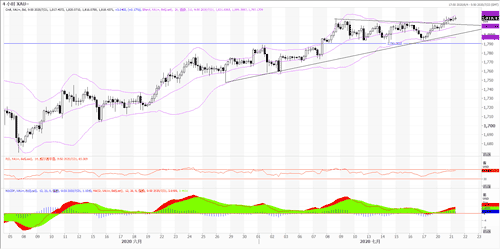 昨日黄金突破前高1818美元,最高升至1820.52美元,收盘于1817.3美元,上涨了8.4美元。