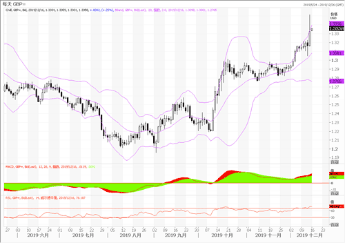 上周,具有挑战性的英国脱欧以及政治不确定性减少推动英镑兑美元GBP/USD升至1.35上方。英镑近期的大幅波动料将逐渐消退。这可能会让英镑再次更多地受到经济基本面的驱动。市场参与者乐观地认为,在近几个月陷入停滞后,英国经济将在明年初反弹,并进一步提振英镑。然而,这一观点将受到英国即将公布的数据的考验。如果疲软的经济增速被证明会持续的比预期更久、英国央行在2020年有可能降息,而且英国央行将在下周的货币政策会议上如果维持鸽派政策立场,则英镑近期维持上涨趋势将面临的挑战。技术图形上,短线英镑兑美元存在高位获利回吐调整修复技术指标的需求,但回调只要不落于1.32之下,则后市仍倾向逢低入多英镑。